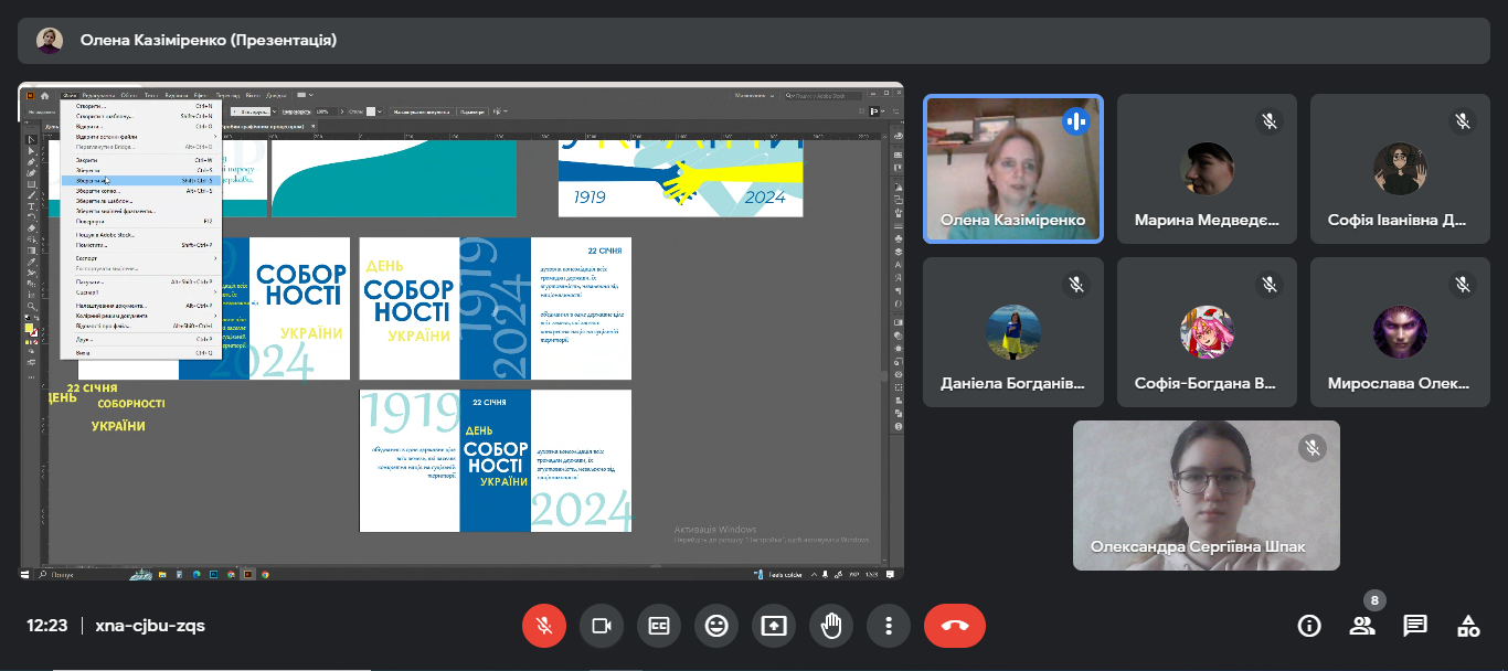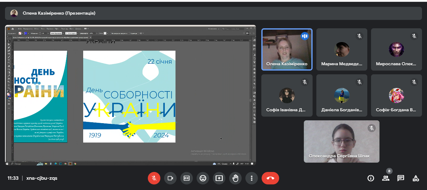 22 січня 2024 року викладачі та студенти спеціальності Графічний дизайн взяли участь в майстер-класі “Шрифтовий плакат до Дня Соборності України”, підготовлений та проведений головою циклової комісії образотворчого мистецтва і дизайну Оленою КАЗІМІРЕНКО.