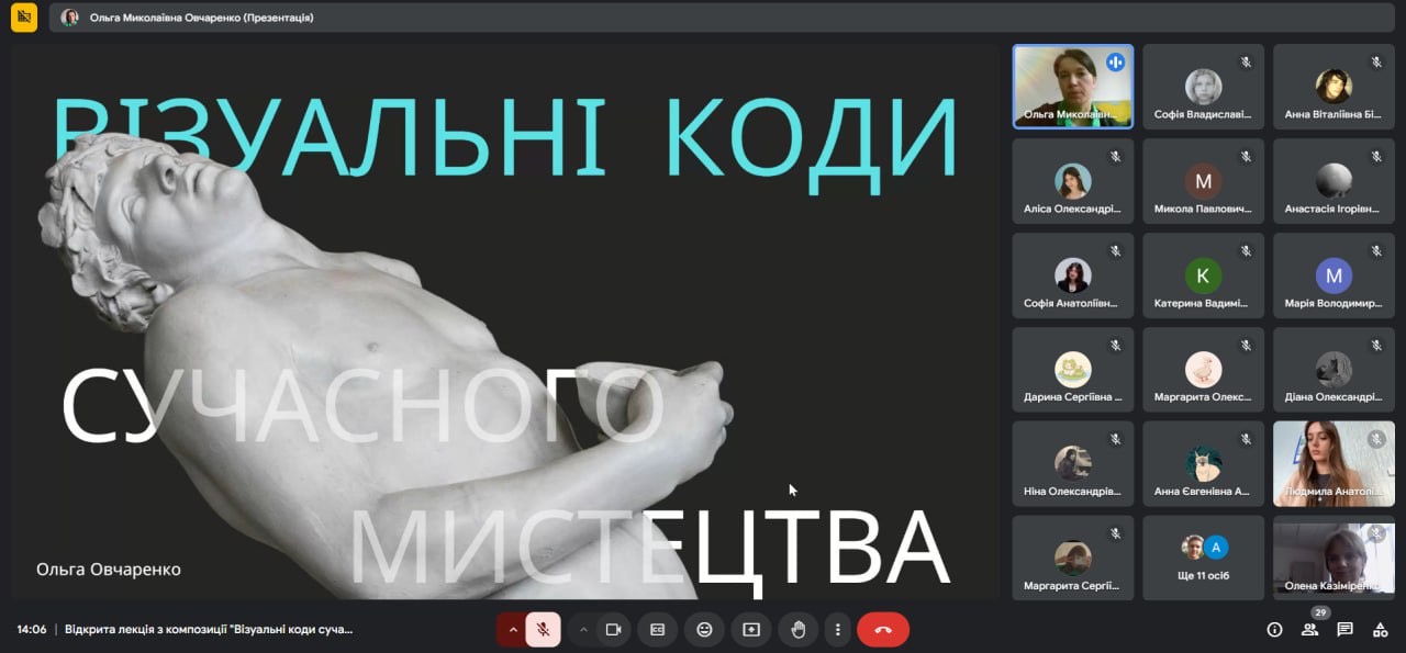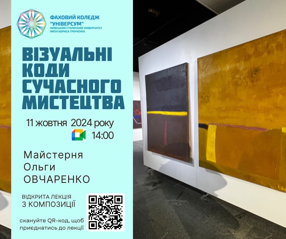 11 жовтня 2024 року в рамках декади Циклової комісії образотворчого мистецтва і дизайну відбулася лекція від Ольги ОВЧАРЕНКО на тему «Візуальні коди сучасного мистецтва».