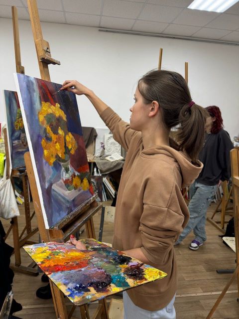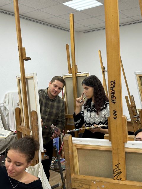 16 жовтня 2024 року в майстерні Фахового коледжу “Універсум” Київського столичного університету імені Бориса Грінченка було проведено відкрите заняття викладача циклової комісії образотворчого мистецтва і дизайну Ярослава БІЛИКА з предмету “Технології олійного живопису” на тему “Натюрморт в абстрактно-імпресіоністичній манері”.