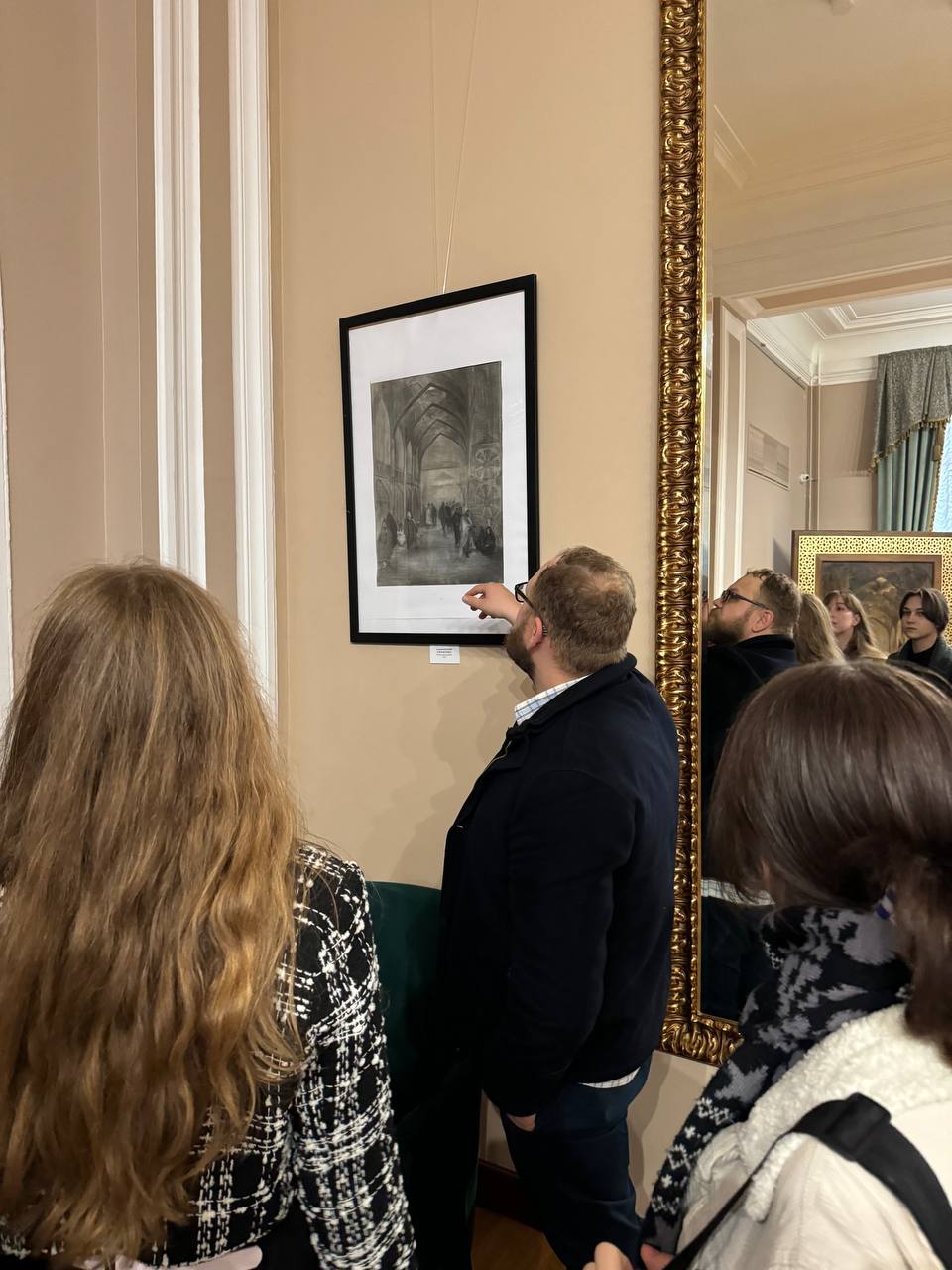 Студенти поспілкувались з Анатолієм Погорілим про різні аспекти та можливості виставкової діяльності, підготовку творів для експонування в галереї, а також про етапи роботи над дипломним проєктом та важливість дисципліни в роботі митця.