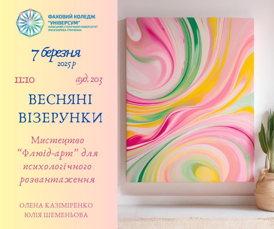 7 березня 2025 року викладачі та співробітники Фахового коледжу “Універсум” Київського столичного університету імені Бориса Грінченка відвідали майстер-клас “Весняні візерунки” від викладачів циклової комісії образотворчого мистецтва і дизайну Олени КАЗІМІРЕНКО та Юлії ШЕМЕНЬОВОЇ.