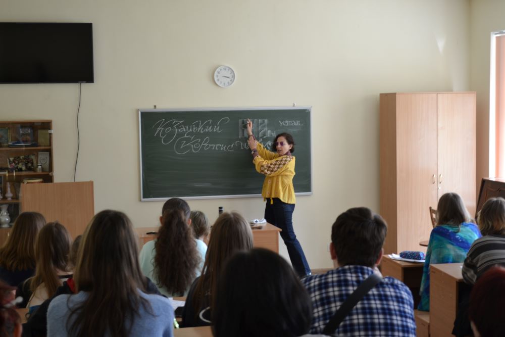 17 квітня 2025 на святкування Дня коледжу 2025, завітала членкиня Ради роботодавців Фахового коледжу “Універсум” Київського столичного університету імені Бориса Грінченка Верменич Ольга Геннадіївна з майстер-класом “Таємниці Козацького Скоропису”.