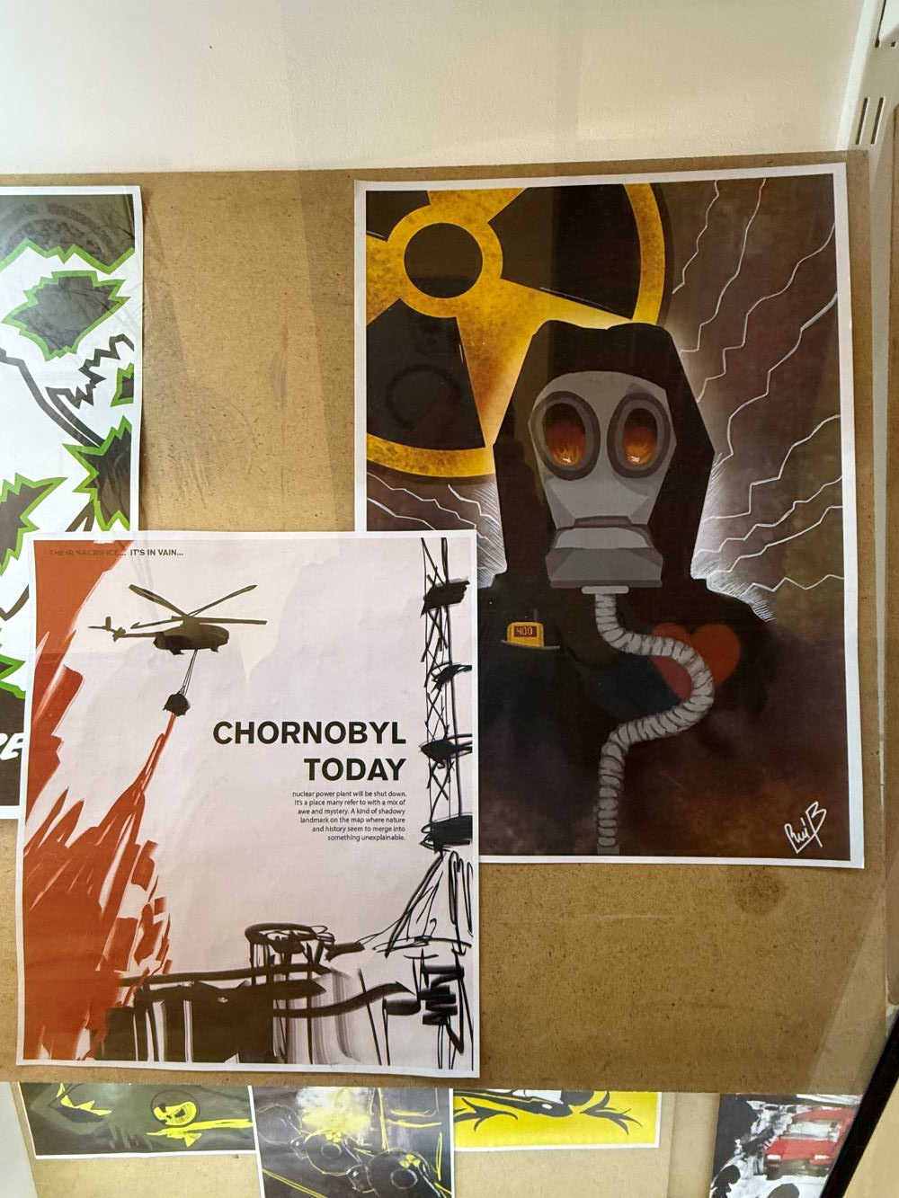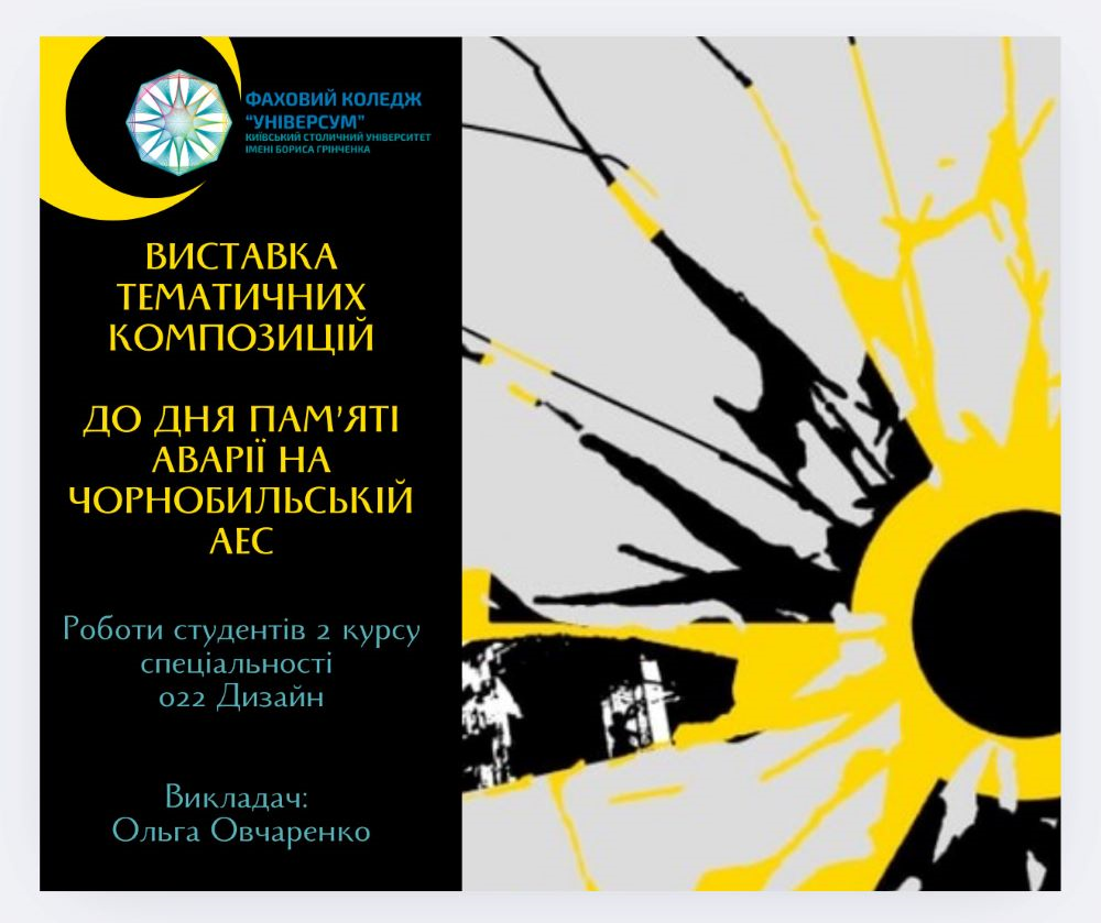 З глибокою повагою до цієї важливої дати, студенти другого курсу спеціальності 022 Дизайн, під керівництвом викладачки Ольги Овчаренко, створили пронизливі тематичні композиції. У своїх роботах молоді митці відобразили біль втрати, героїзм ліквідаторів, пожежників, медичних працівників та всіх, хто долучився до подолання наслідків катастрофи.