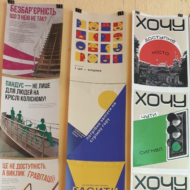 20 травня 2025 року в межах заходів присвячених до Національного тижня безбар’єрності на першому поверсі Фахового коледжу “Універсум” Київського столичного університету імені Бориса Грінченка, студентки ІІІ курсу презентували виставку плакатів, які закликають громаду до усунення бар’єрів у різних сферах життєдіяльності людини.