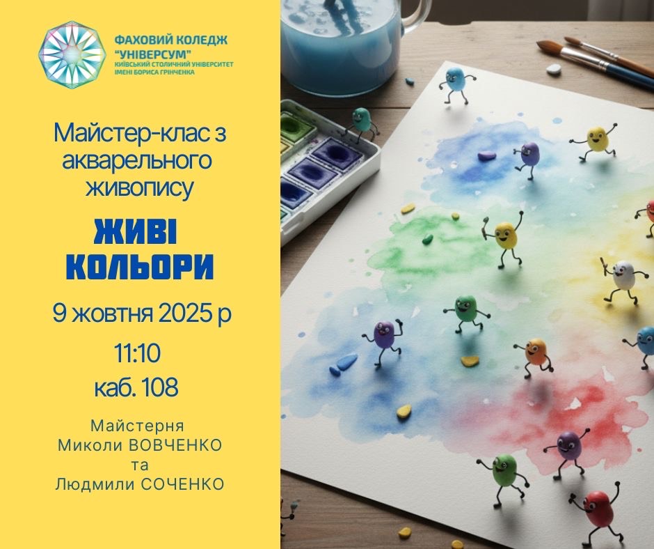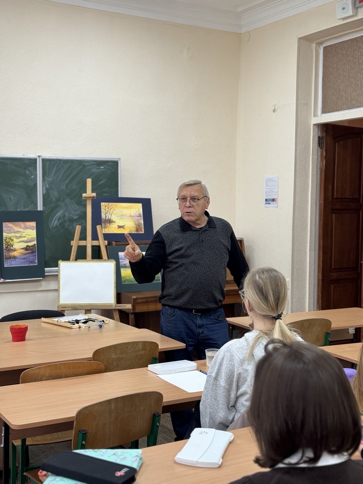 Що було найціннішим? Микола Павлович допоміг студентам подолати «страх чистого аркуша» та роботи з насиченим кольором! Майстер наочно продемонстрував, як легко та вільно можна створювати живі, динамічні переходи, розкриваючи таємниці справжньої «мокрої» акварелі.