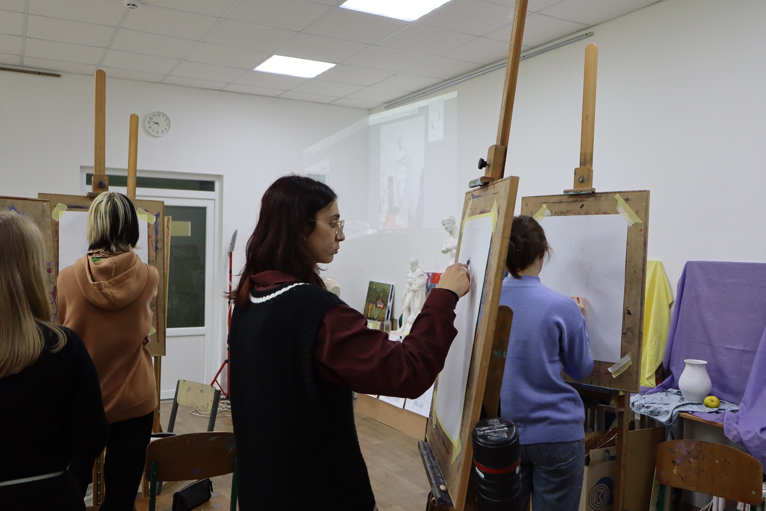 Під час заняття викладач продемонстрував послідовність виконання академічного рисунку, акцентував увагу на пропорціях, об’ємно-просторовій побудові та анатомічній структурі людського тіла.