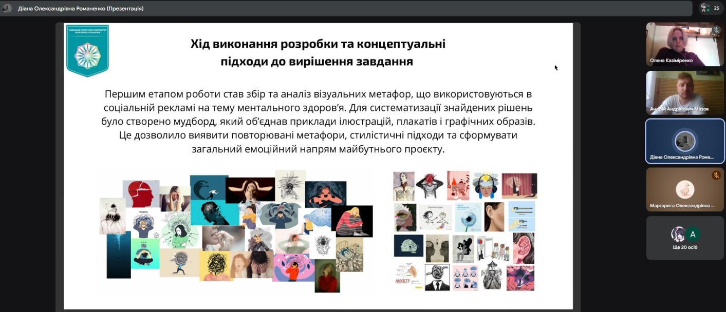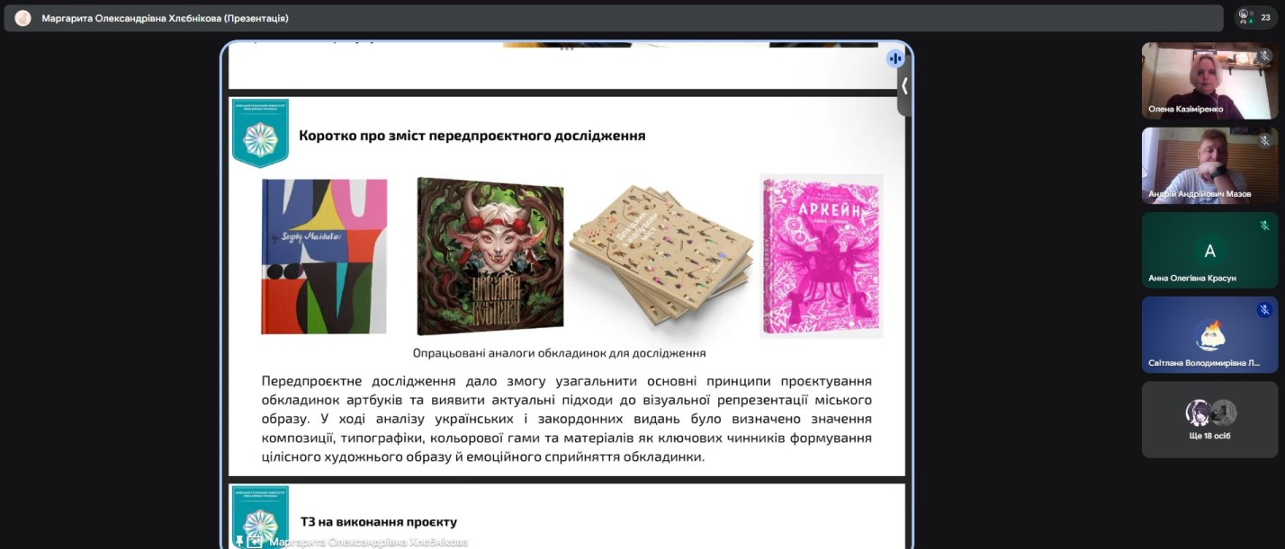 Під час захисту студентки презентували ґрунтовні дослідження та креативні розробки, що охоплюють широкий спектр сучасної індустрії графічного дизайну: від концептуального оформлення книжкових видань та авторських ілюстрацій до розробки лаконічних логотипів і харизматичних фірмових персонажів. Особливий акцент було зроблено на поєднанні естетичної привабливості з функціональністю та актуальними ринковими запитами.