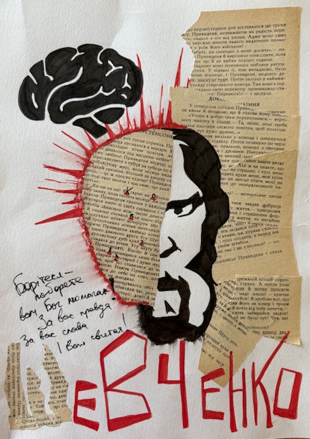 Головне завдання практичної роботи полягало у створенні гротескної композиції. Наші студенти вчилися: візуально інтерпретувати образи перетворюючи складні сенси творів Кобзаря на гострохарактерні візуальні об’єкти; свідомо деформувати форму використовуючи гіперболу для створення емоційно насичених персонажів; поєднувати непоєднуване майстерно збираючи контрастні елементи у цілісну та виразну композицію.