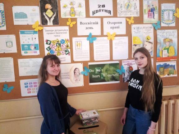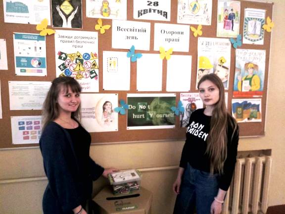 У рамках декади ЦК природничих дисциплін та з нагоди відзначення Всесвітнього дня охорони праці студенти коледжу, групи ДЗмс-1-14-4.0д і ОМмс-1-14-4.0д, підготували виставку плакатів з охорони праці, метою якої було привернення уваги до наявних проблем у сфері охорони праці, формування свідомої позиції щодо забезпечення здорових і безпечних умов праці в різних сферах суспільного життя.
