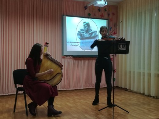 У виконанні студентів спеціальностей “Музичне мистецтво”, “Хореографія", "Початкова освіта” та викладачів циклової комісії музики і хореографії звучали поезії Бориса Грінченка, пісні на його слова, інструментальні твори.