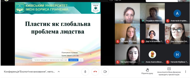 27 березня 2021 року студенти Фахового коледжу «Універсум» Київського університету імені Бориса Грінченказ нагоди Години Землі брали участь у І етапі студентської науково – практичної онлайн-конференції «Екологічна компетентність НУШ».