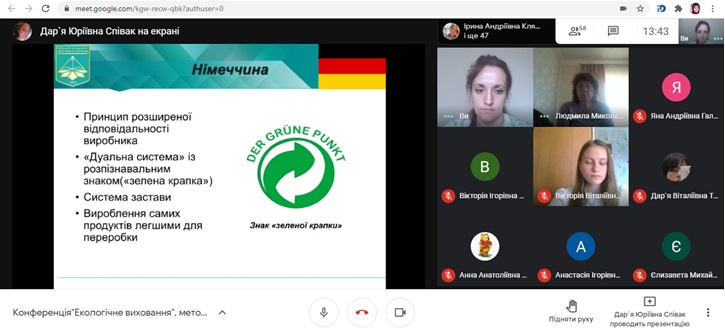 - «Екологічна компетентність НУШ».Доповідач Ткачук Д., група ПОмс-2-17-4.0д;