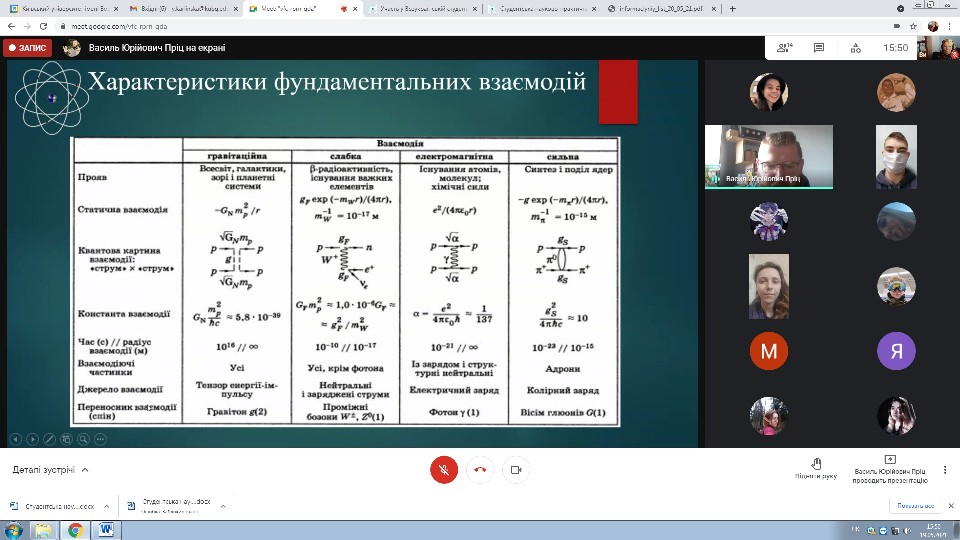 Під час засідання була заслухана доповідь викладача фізики та астрономії Пріца Василь про Стандартну Модель фізики елементарних частинок. Студенти мали змогу ознайомитися з фундаментальними чатинками з яких складається матеріальний світ та їхніми характеристиками.