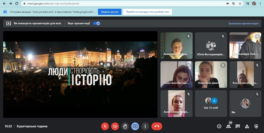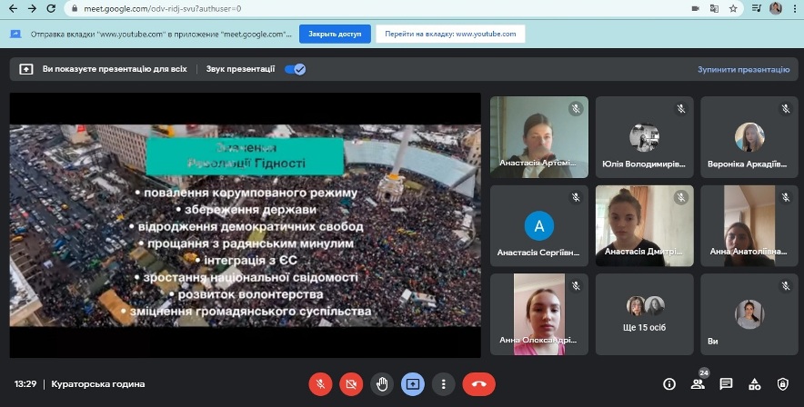 19 листопада 2021 року у групі СПфмб-1-21-4.0д відбулась кураторська година на тему «Люди творять історію» на честь двох революцій: Помаранчевої революції та Революції гідності.