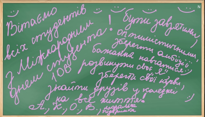 17 листопада 2021 р. у Фаховому коледжі «Універсум» Київського університету імені Бориса Грінченка з нагоди відзначення Міжнародного дня студента проведено онлайн зустріч «Міжнародний день студента».