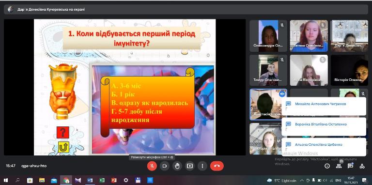 19 та 20 листопада 2021 року у Фаховому коледжі «Універсум» Київського університету імені Бориса Грінченка з нагоди Міжнародного дня студента для студентів груп СПфмб-1-20-4.0д 19 та ДОфмб-2-21-3.0д було проведено інтерактивну гру «Біологія людини».