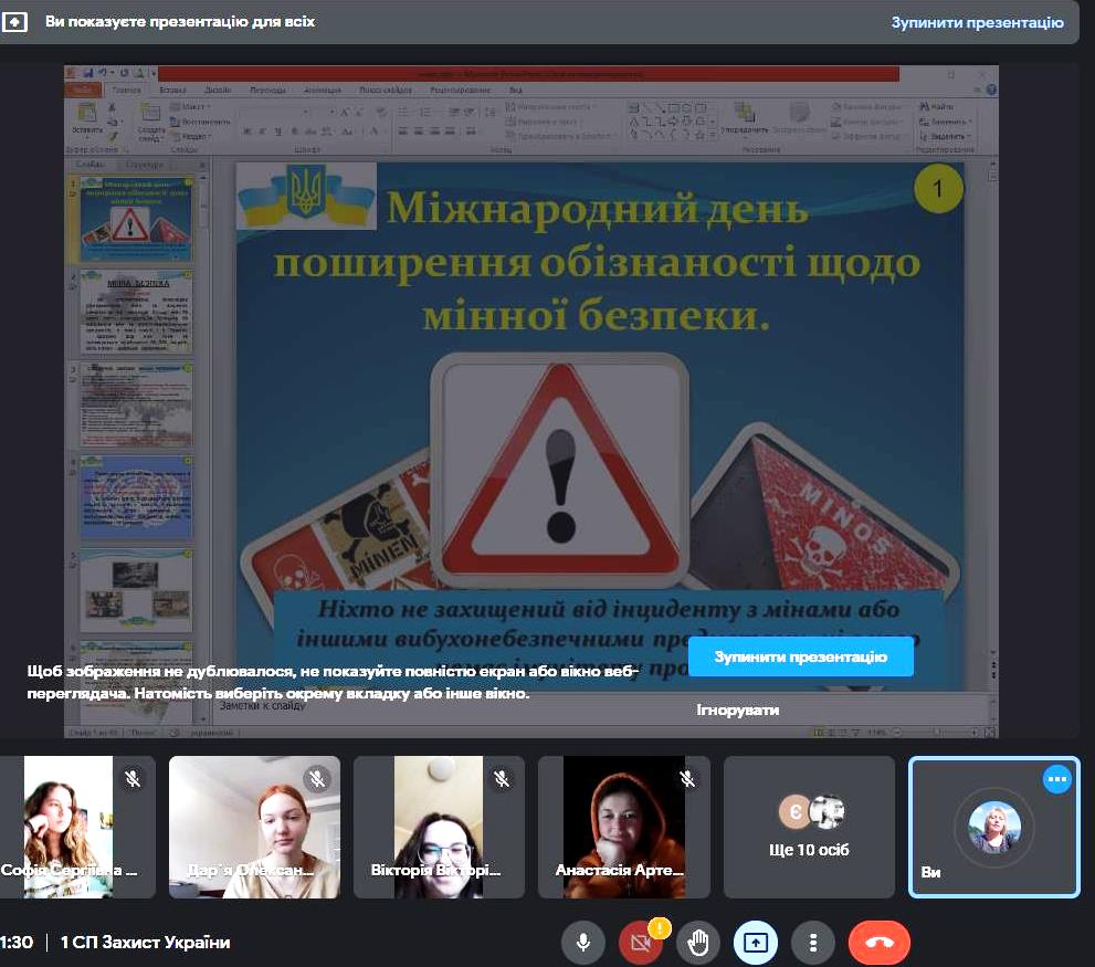 07 квітня 2022 року у Фаховому коледжі «Універсум» до Міжнародного дня обізнаності щодо мінної безпеки для студентів групи СПфмб-1-21-4.0д було проведено інтерактивну бесіду «Обережно, міни!».