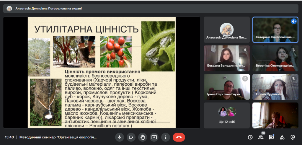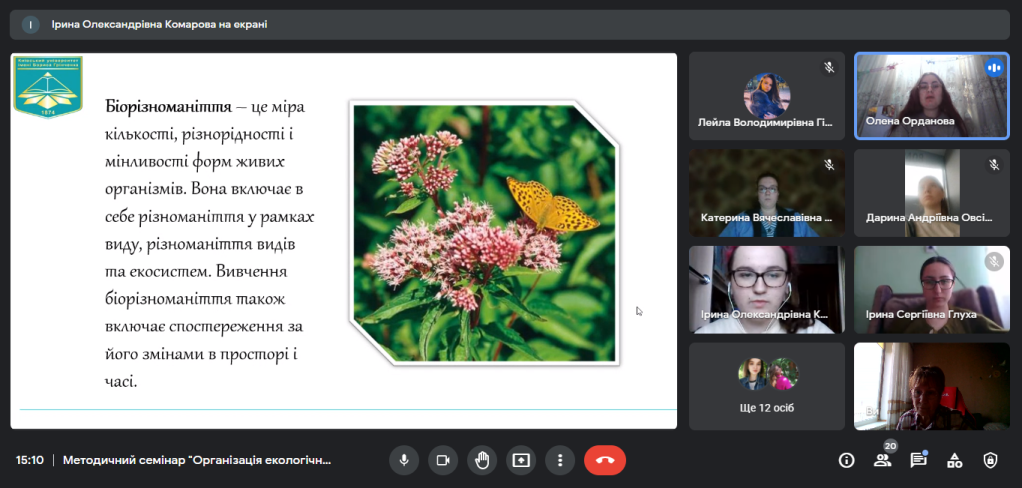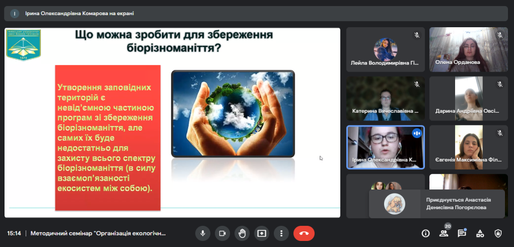 Під час семінару студенти визначили поняття біорізноманіття та чинники, які на нього впливають. Розглянули одну із систем екологічного виховання в сучасній початковій школі, форми, методи та засоби виховання екологічної культури.