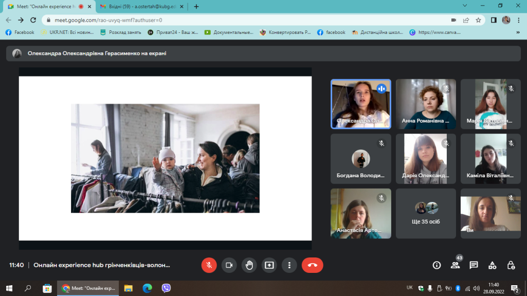 28 вересня 2022 року в рамках заходів до Дня Університету у групах ПОфмб-2-21-4.0д та СПфмб-1-21-4.0д відбувся онлайн experience hub грінченківців-волонтерів. З метою формування свідомої громадянської позиції, сприяння високому розвитку самоорганізації, популяризації волонтерського руху та благодійності в країні. На заході студенти дізналися про різні види волонтерства та поділилися власним досвідом волонтерства.