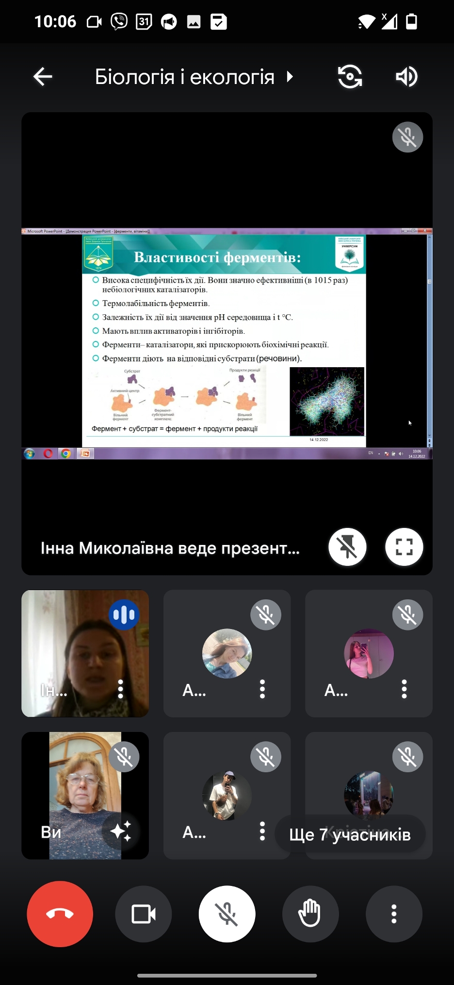 14 грудня 2022 року у Фаховому коледжі «Універсум» Київського університету імені Бориса Грінченка для студентів групи ПРфмб-1-22-4.0д. було проведено відкрите заняття з дисципліни «Біологія і екологія» викладача циклової комісії природничих дисциплін Вітер Інни Миколаївни на тему «Роль ферментів, у забезпеченні процесів метаболізму клітини та цілісного організму. Вітаміни, їх роль у обміні речовин».