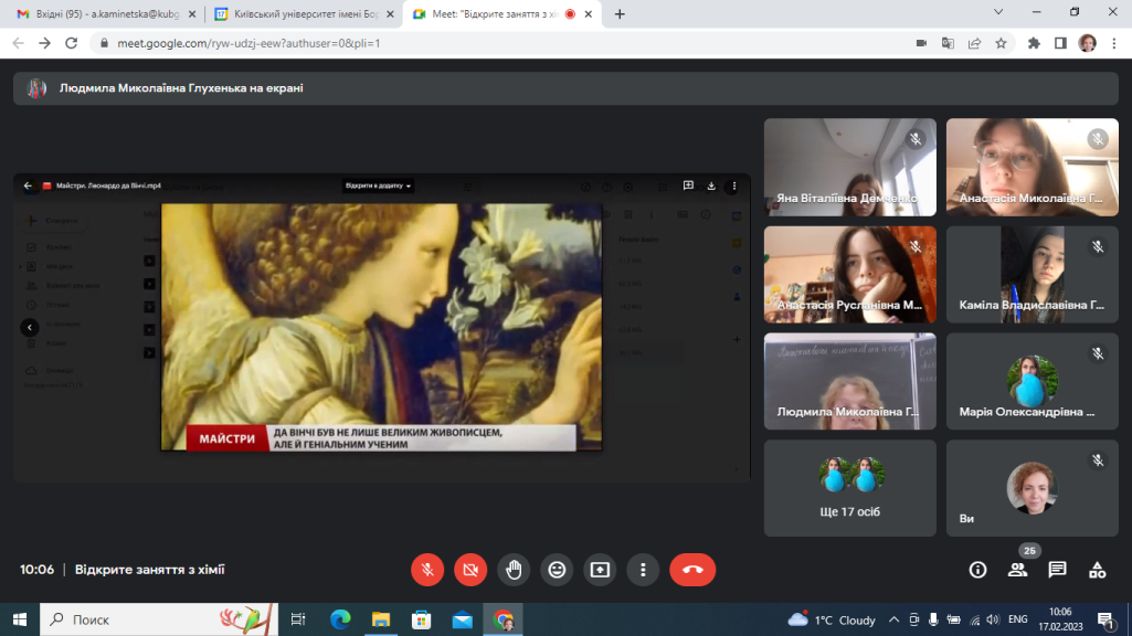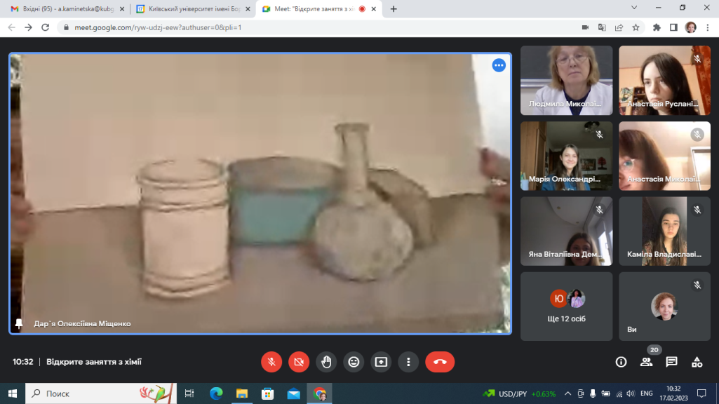 17.02.2023р. у Фаховому коледжі «Універсум» Київського університету імені Бориса Грінченка відбулося відкрите заняття викладача Глухенької Л.М. з навчальної дисципліни «Хімія» на тему «Властивості неметалів та їх сполук. Хімія і образотворче мистецтво». Заняття проводилося зі студентами групи ОМфмб-1-22-4.0д.