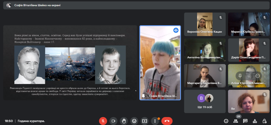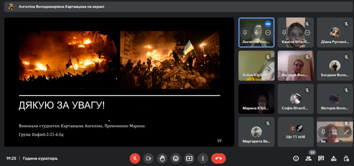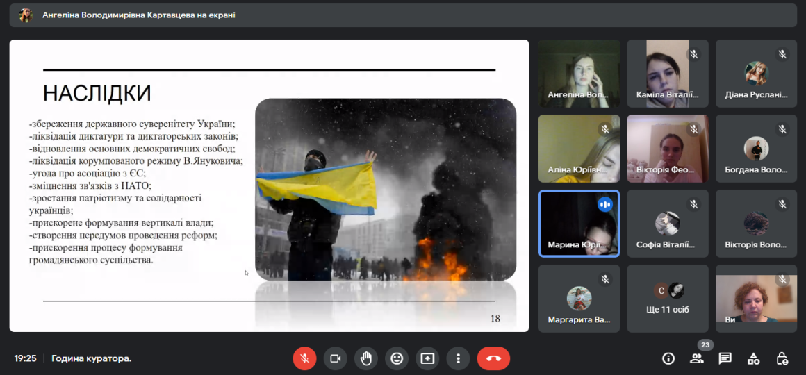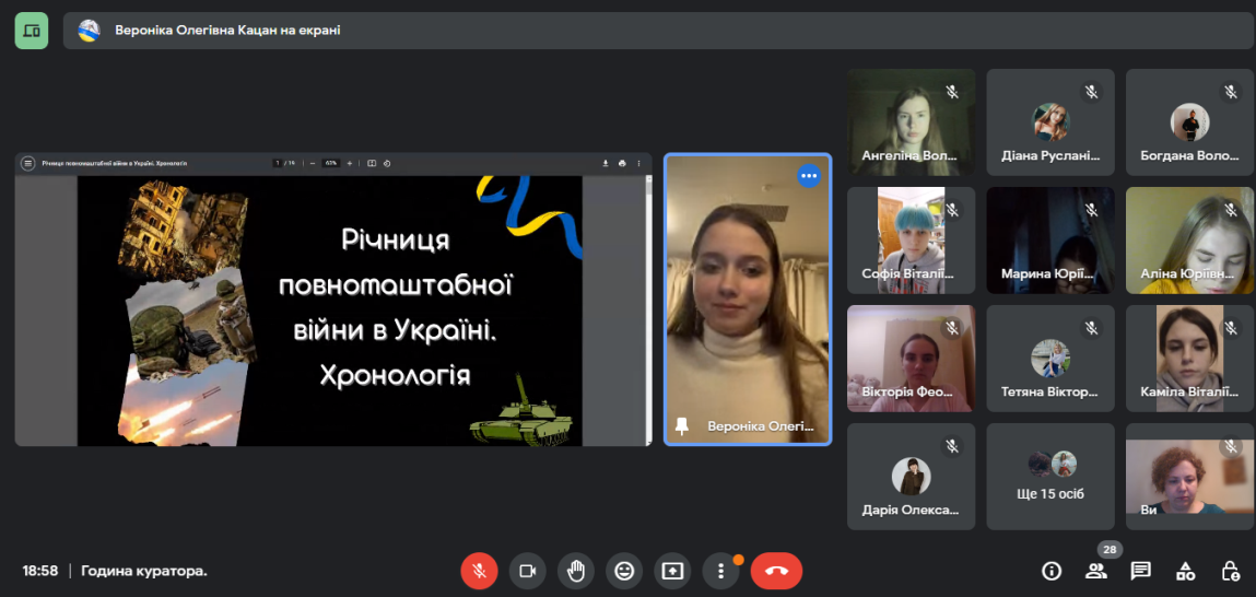 24 лютого 2023 року у Фаховому коледжі «Універсум» Київсьеого університету імені Бориса Грінченка за ініціативою студентів групи ПОфмб-2-21-4.0 було проведено кураторську годину на тему "Україна понад усе!". Зустріч була присвячена новітній історії України, боротьбі українців на шляху відстоювання своєї державності та власної ідентичності. Студенти відновили події Революції Гідності, назвали державні свята, які відображають цінності української нації. Особливу увагу приділили річниці повномасштабної українсько-російської війни, виокремивши найбільш знакові події. Також згадали про екологічні наслідки, які вже шкодять існуючим екосистемам України та ті, які ще очікують нас в майбутньому. Вшанували пам'ять тих, хто загинув у цій несправедливій війні.