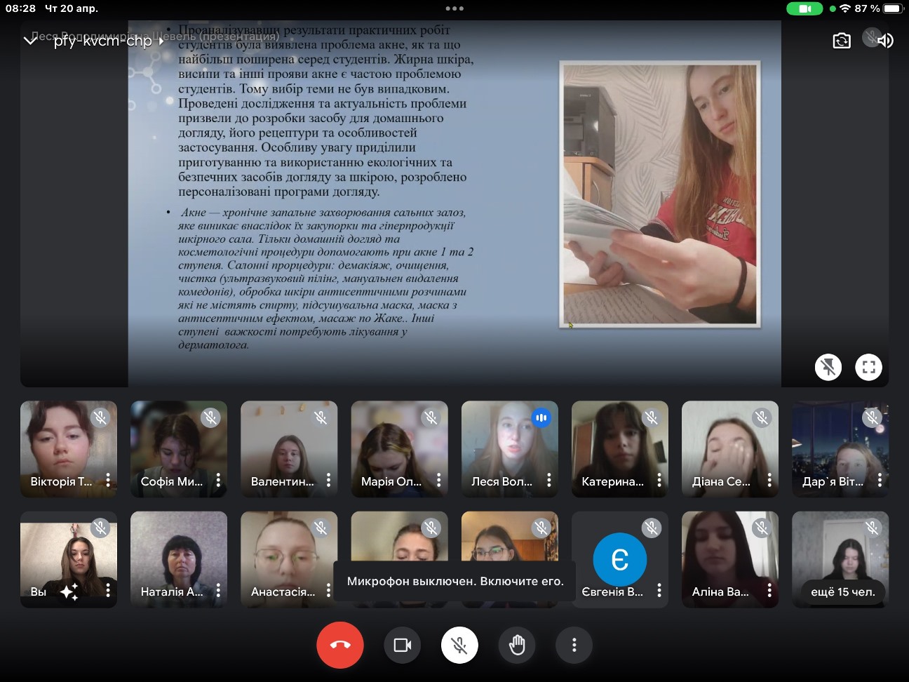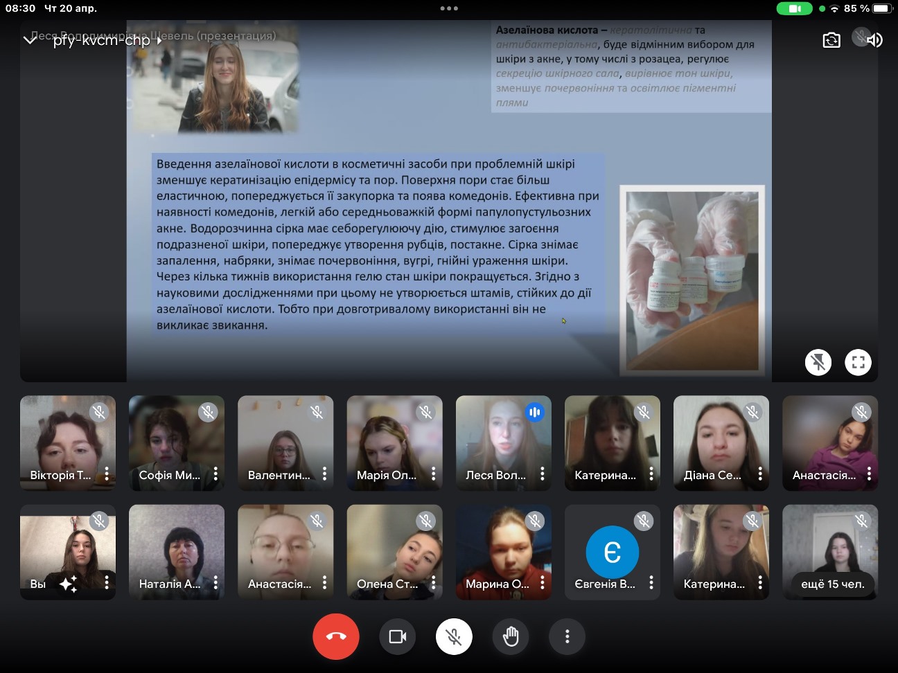 20 квітня 2023 року у Фаховому коледжі «Універсум» Київського університету імені Бориса Грінченка в рамках Декади природничих дисциплін для студентів І курсу групи ПОфмб-2-22-3,0д викладачем Наталею ВАРДОЮ та студенткою ІV курсу групи ПОмс-1-19-4.0д Лесею ШЕВЕЛЬ було проведено майстер-клас з догляду за шкірою та виготовлення індивідуальних косметичних засобів «БЕЗпроблемна шкіра».