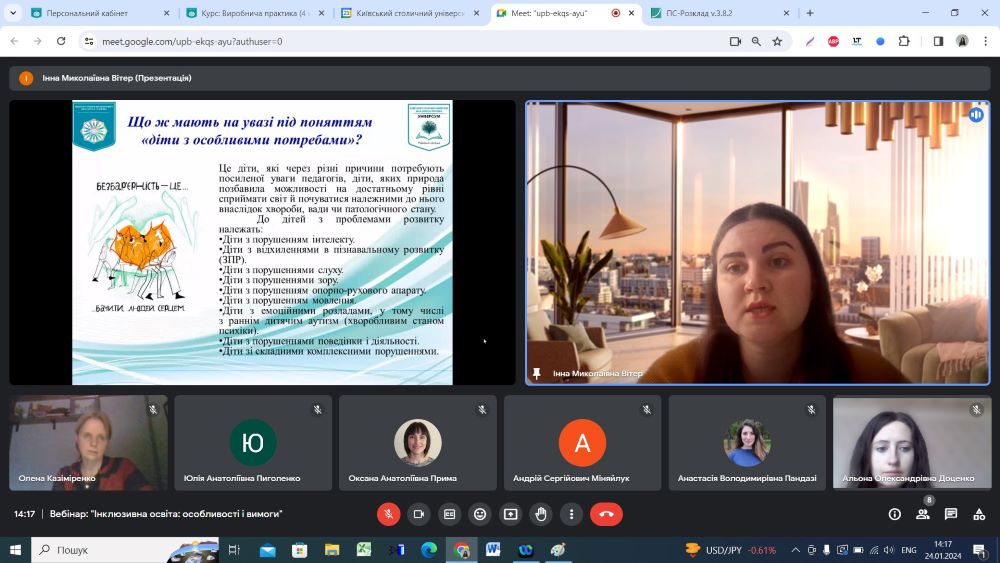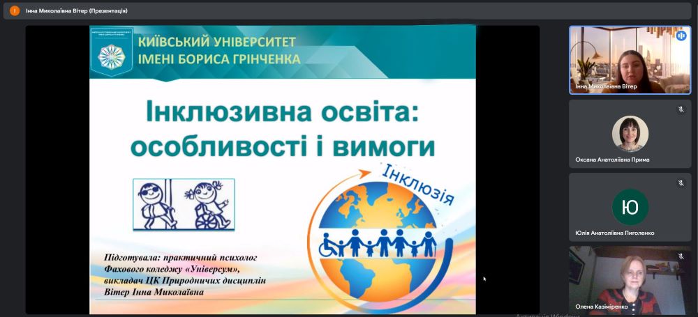 24 січня 2024 року до Міжнародного дня освіти у Фаховому коледжі "Універсум" було проведено вебінар для викладачів "Інклюзивна освіта: особливості і вимоги", під час якого учасники дослідили світові тенденції інклюзивної освіти, дізналися які є умови та вимоги до навчання дітей з особливими освітніми потребами та поділилися власним досвідом.