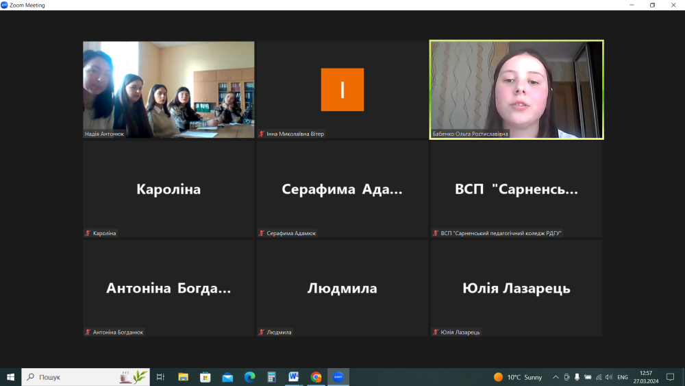 27.03.2024 року викладач ЦК природничих дисциплін Глухенька Л.М. разом зі студенткою спеціальності 013 Початкова освіта Бабенко Ольго. брали участь у Всеукраїнській студентській науково-практичній конференції «ВОЛИНСЬКА ВЕСНА: ПЕРШІ ПАРОСТКИ НАУКИ», яка проходила на базі Луцького педагогічного коледжу. Від коледжу з доповіддю виступила Ольга Бабенко «Зовнішні проблеми початкової освіти».