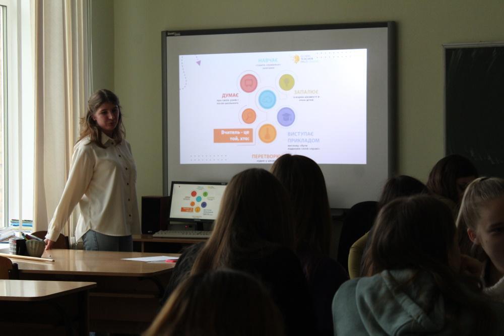 18 квітня 2024 року у Фаховому коледжі «Універсум» Київського столичного університету імені Бориса Грінченка для студентів групи ПОфмб-2-22-3.0д відбулася гостьова лекція за участі представниці Ради випускників колежду Юлії РІЗНИК, вчительки початкових класів санаторної школи І-ІІ ступенів №20 Шевченківського району м.Києва на тему: «Особливості професійного зростання вчителя початкових класів».