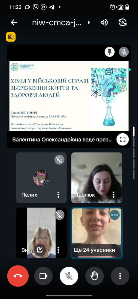 Від коледжу з доповіддю виступила Петрович Євгенія «Хімія у військовій справі: збереження життя та здоровя людей».Вплив війни на освітній процес