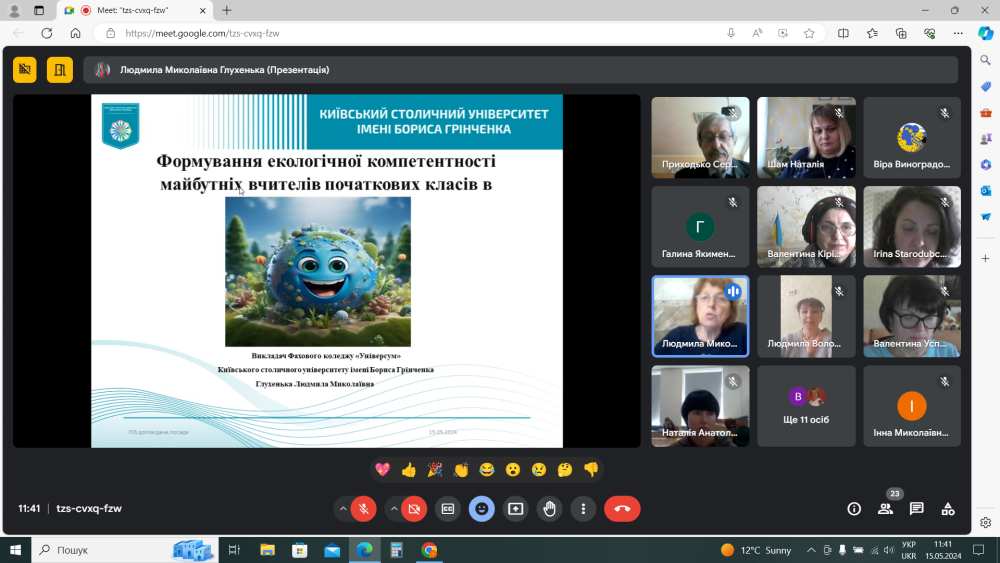 15 травня 2024 року викладачі ЦК природничих дисциплін Глухенька Л.М., Вітер І.М., Варда Н.А., Камінецька А.Р., Мальцева Л.В. брали участь у онлайн- семінарі « Інтеграційний підхід у процесі формування екологічної компетентності здобувачів освіти педагогічних ЗФПО» серед викладачів природничих дисциплін педагогічних ЗФПО Центрального регіону України.