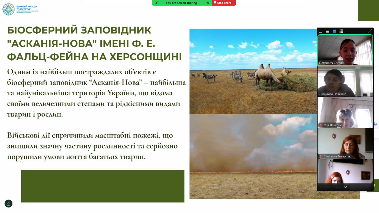Від коледжу з доповіддю виступила Петрович Євгенія «Війна та природа: виклики та шляхи вирішення».