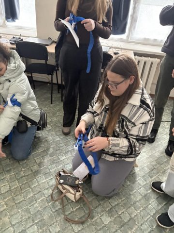 Відпрацювали навички правильного накладання турнікета та використання альтернативних засобів.