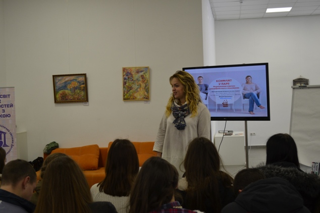 21.04.2017 року на базі Галереї мистецтв Деснянського району для студентів групи СПмс – 1 – 15 – 4.Од був проведений тренінг «Привіт! Я – конфлікт». Мета тренінгу: отримати інформацію про конфлікти, особливості їх перебігу, причини виникнення; оволодіти навичками ефективного вирішення конфліктів; ознайомитися із способами психологічного захисту, самодопомоги у ситуації конфлікту та сучасними техніками вирішення конфліктів.