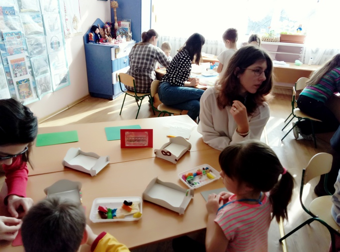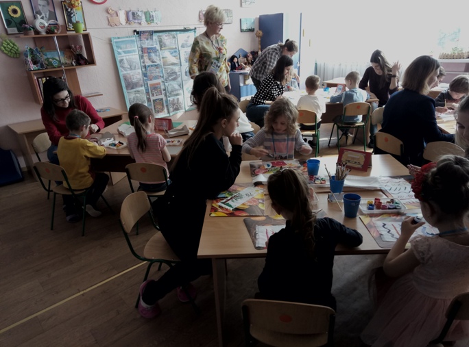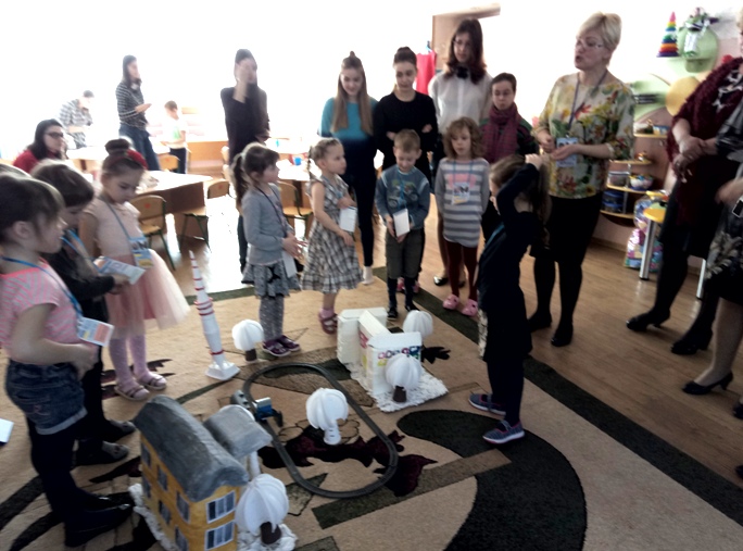 27 березня 2018 року відбулося виїзне заняття для студентами ІІІ курсу спеціальності "Дошкільна освіта" на базі закладу дошкільної освіти № 428 з теми "Використання спадщини Василя Сухомлинського в розвитку дітей дошкільного віку". Вихователь середньої групи Могутнова Н.В. поділилась досвідом використання проектної технології та групової організації дітей. А студенти стали безпосередніми учасниками "освітньої подорожі", яку здійснювали малюки, та активними партнерами процесу співтворчості за казками Василя Сухомлинського - декоративного малювання рушника на тканині, декоративного ліплення (оздоблення колиски), аплікації та конструювання з паперу.