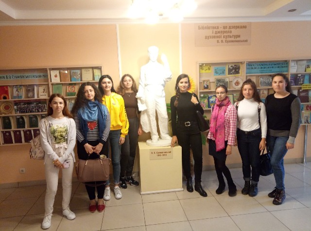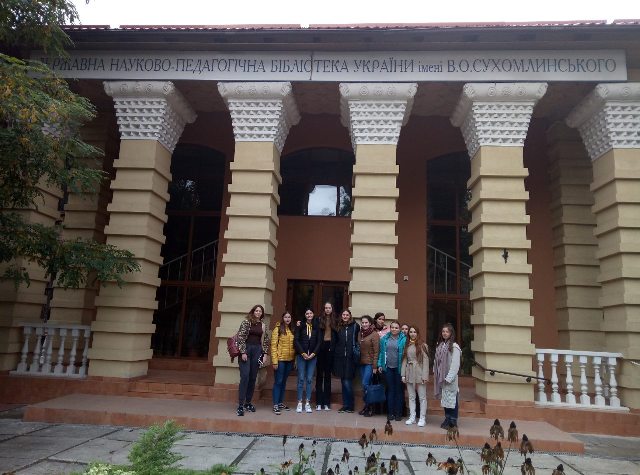 4 жовтня 2019 року відбувся воркшоп у Державній науково-педагогічній бібліотеці імені Василя Сухомлинського «Педагогіка серця у спадщині Василя Сухомлинського» для груп ПОм-3-17-4.Од, ПОм-1-17-4.Од. Студенти мали можливість у цікавій формі познайомитися зі спадщиною відомого педагога, його педагогічними ідеями. Також преглянути серію фільмів про Василя Сухомлинського, окрім того познайомитися з унікальними стародруками, бібліотечним фондом читального залу, споглядати виставку унікальних робіт художників. Майбутні педагоги відвідали музейний зал, присвячений Василю Сухомлинському, де відбулися педагогічні читання. Дякуємо працівникам бібліотеки за можливість доторкнутися до педагогічної спадщини унікального світоча педагогіки, неперевершеного Учителя – Василя Сухомлинського.