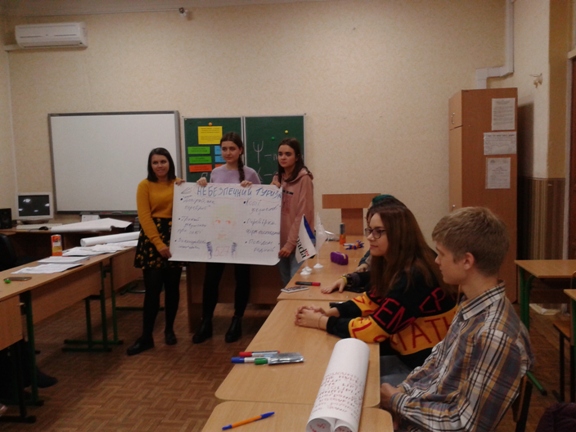 Студенти визначили ризики потрапляння в ситуації торгівлі людьми, причини та наслідки цього явища, а також обговорили покроковий план реалізації заходів з тематики протидії торгівлі людьми серед молоді.