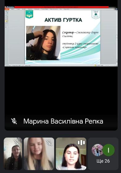 Під час зустрічі було представлено керівника і студентський актив гуртка. Також проговорили мету та завдання діяльності студентського наукового гуртка.
