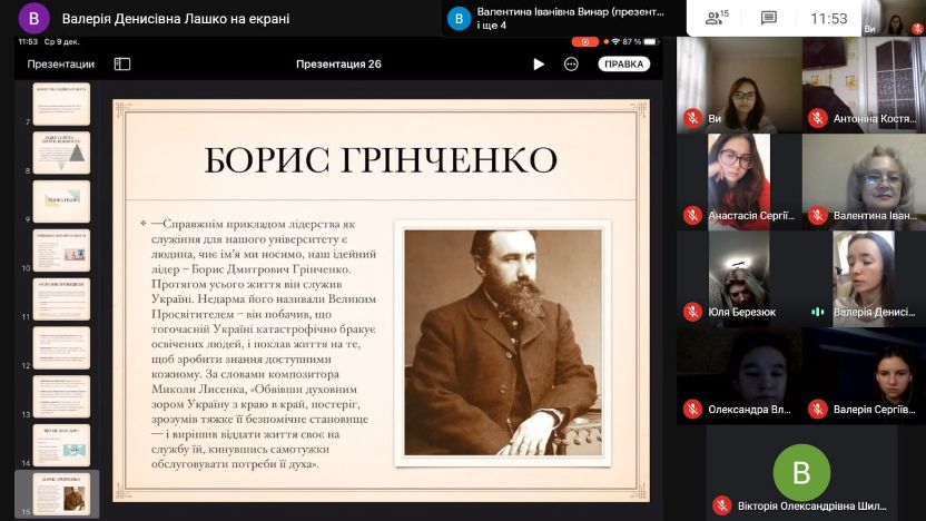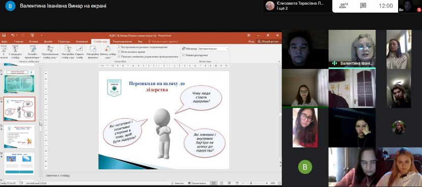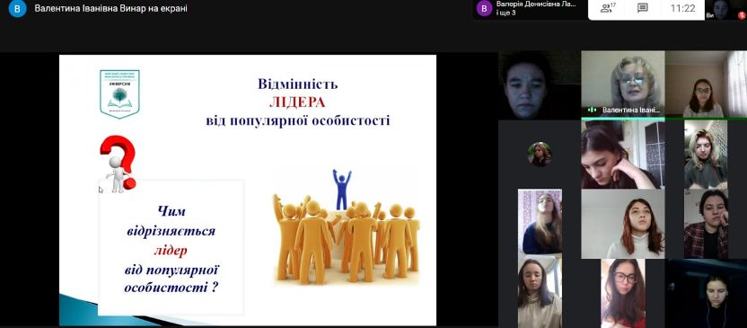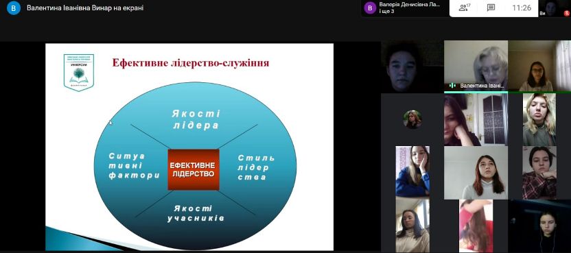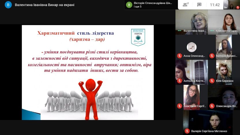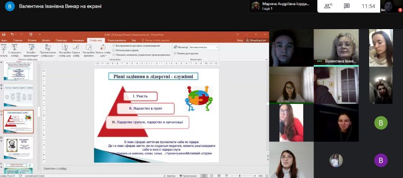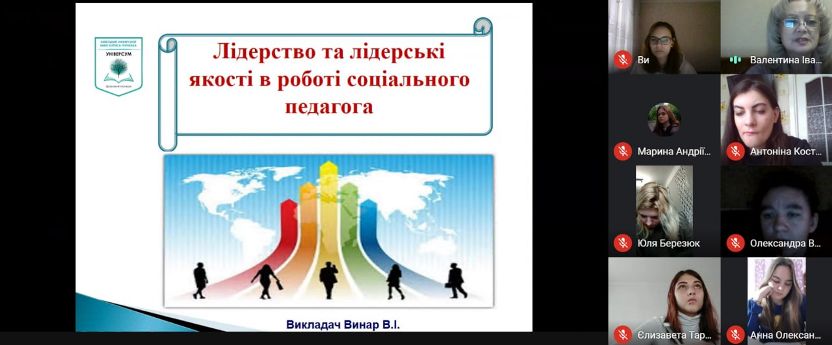 7 грудня 2020 року в Фаховому коледжі «Універсум» Київського університету імені Бориса Грінченка для студентів третього курсу спеціальності Соціальна педагогіка було проведено онлайн-тренінг: «Лідерство та лідерські якості в роботі соціального педагога».