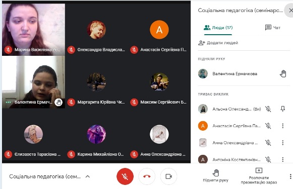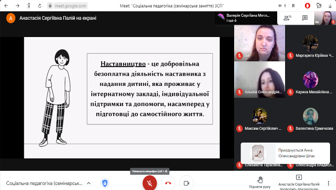 24.02.2021 було проведено семінарське заняття з представницею Ради роботодавців Фахового коледжу «Універсум», діловодом відділу методичного забезпечення соціальної роботи КМЦСС Єрмачковою Валентиною Юріївною та студентами 3 курсу спеціальності «Соціальна робота».