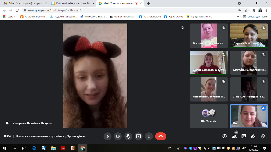 З нагоди Дня захисту дітей 02.06.2021р. було проведено заняття з елементами тренінгу на тему "Права дітей" для студентів ІІІ курсу спеціальності 012 Дошкільна освіта.