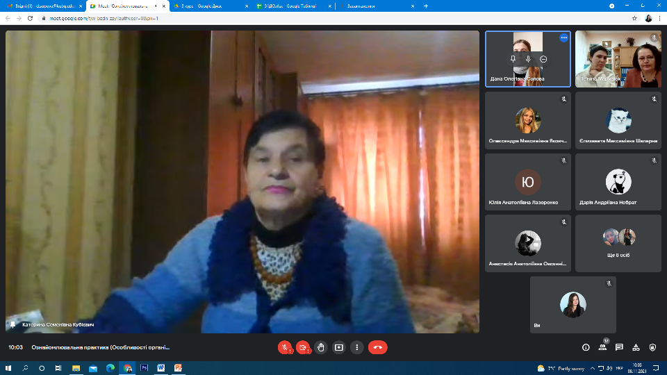 08.11.2021 відбулася зустріч групи ДОфмб-1-20-3.Од з Маринюк Тетяною Миколаївною, директором ЗДО № 650 "Берізка". Під час зустрічі були обговорені особливості створення безпечного та здорового освітнього простору. В ЗДО № 650 працює 30 працівників, в тому числі 13 педагогів, які мають вищу освіту. Педагоги здо № 650 постійно підвищують рівень педагогічної майстерності: семінари, коучинг-сесії, майстер-класи. Творчі звіти педагогів відбуваються у вигляді презентації мультимедійних інсталяцій. Особливе враження справила робота психологічної служби: виготовляються дидактичні матеріали з полісенсорної інтеграції, створена "сенсорна кімната", проводяться цікаві розвиваючі ігри з психологом. Щиро дякуємо Маринюк Тетяні Миколаївні за співпрацю!