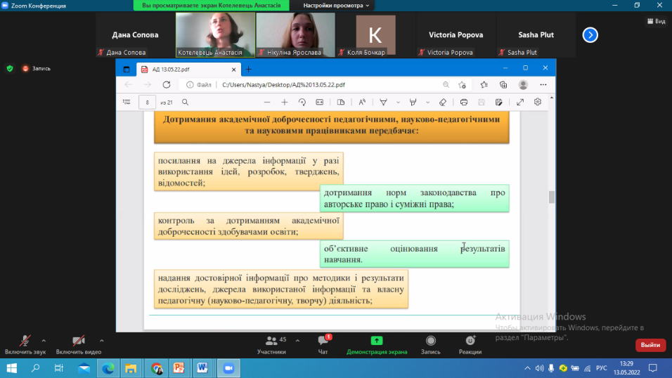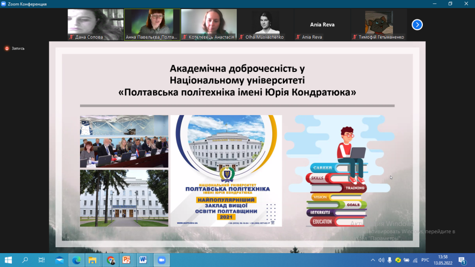 13 травня 2022 року в межах Фестивалю науки-2022 Науковим товариством студентів, аспірантів, докторантів і молодих учених Університету Грінченка спільно з Радою молодих учених гуманітарного факультету Національного університету "Полтавська політехніка імені Юрія Кондратюка" було проведено Наукову кав'ярню "333 кілометри наукової доброчесності в дії". Учасники заходу обговорили досвід впровадження академічної доброчесності в Україні та за кордоном. Від циклової комісії з педагогічної освіти до заходу долучилася Д.О. Сопова з доповіддю на тему: "Академічна доброчесність в університетах Європи (фінський досвід)". Щиро дякуємо за можливість поділитися своїми науковими здобутками в такий непростий час.