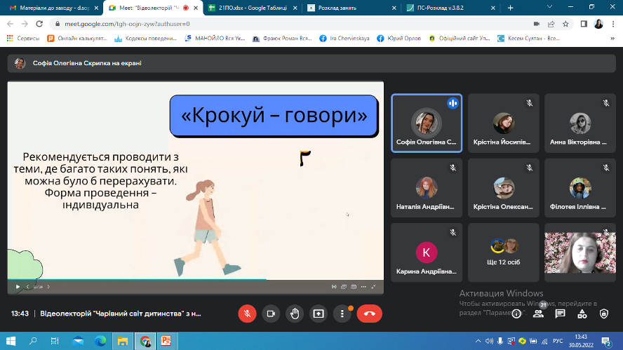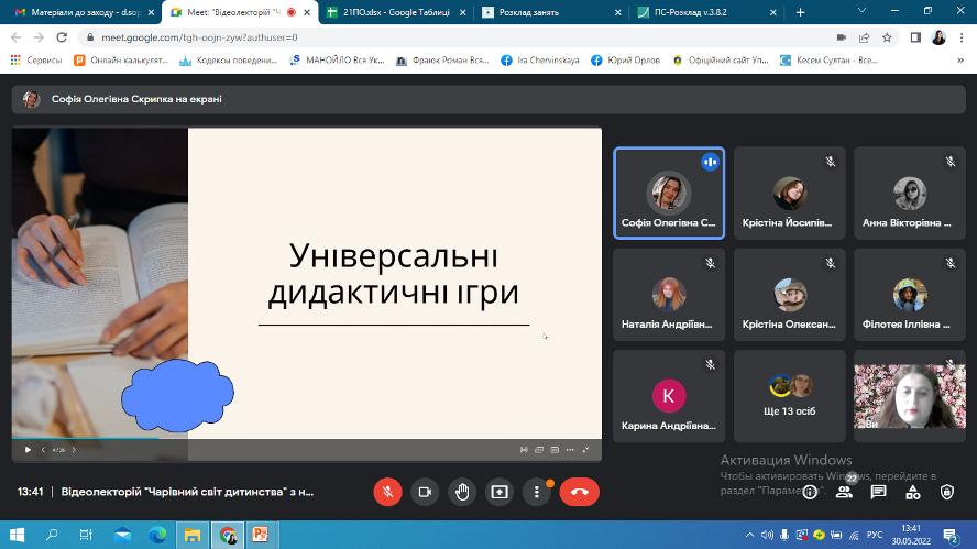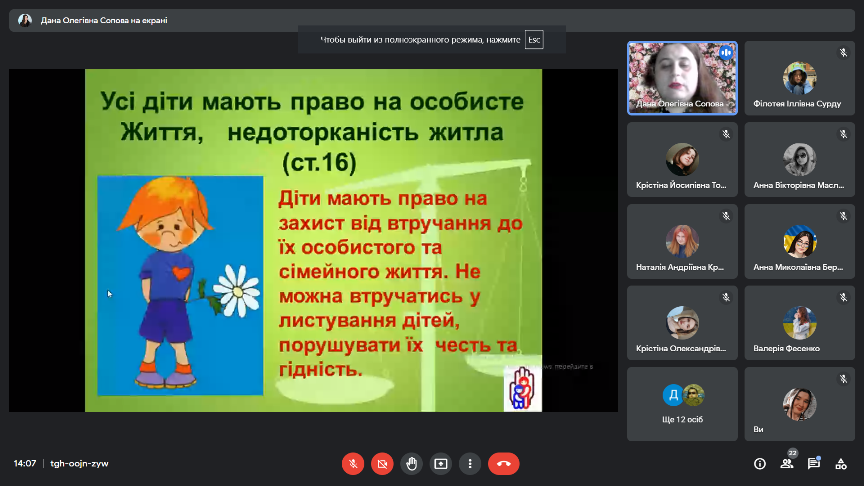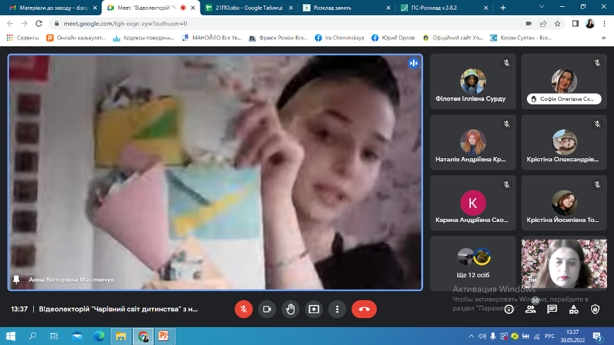 30.05.2022 р. було проведено відеолекторій "Чарівний світ дитинства" з нагоди Дня захисту дітей для студентів ІІ курсу спеціальності "Початкова освіта". Мета заходу: показати красу і неповторність дитячого світу; розвивати естетичні смаки; сприяти вихованню морально-етичних цінностей; акцентувати увагу на правах дітей. Після перегляду мотиваційних відео, студенти презентували дидактичні ігри для учнів початкової школи.