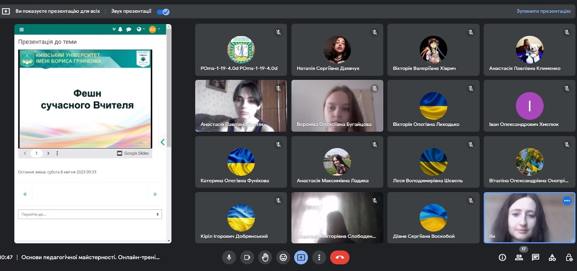 У рамках Декади циклової комісії 8 квітня 2023 року було проведено онлайн-тренінг «Фешн сучасного Вчителя» для викладачів та студентів Фахового коледжу «Універсум» Київського університету імені Бориса Грінченка.