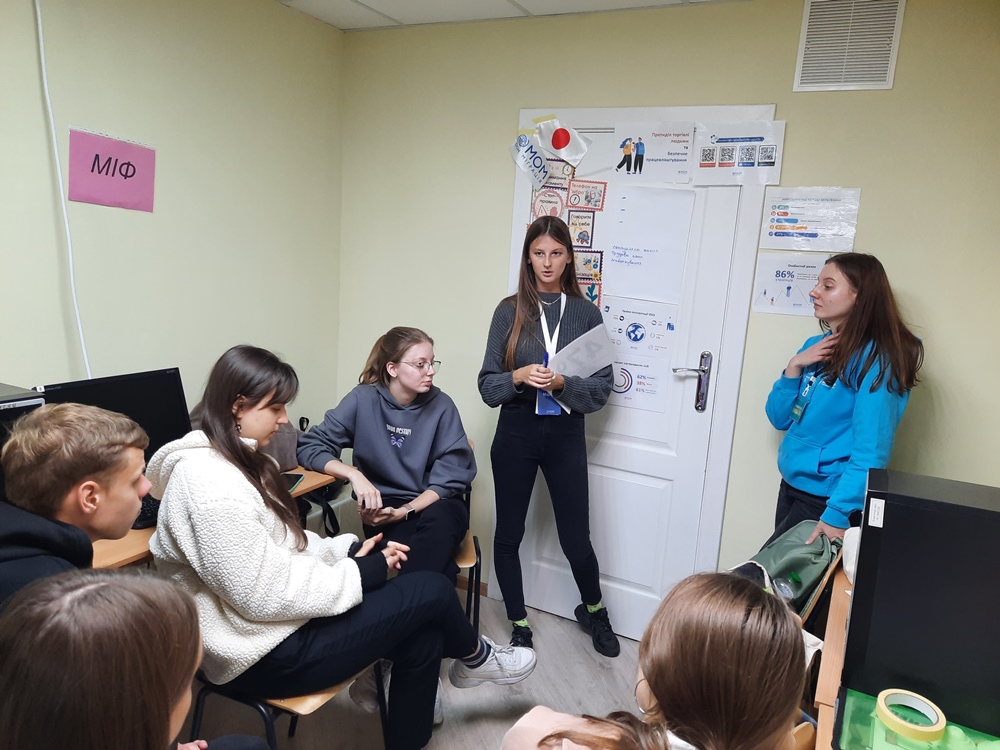 17 жовтня 2023 року із студентами групи СПфмб12040 Фахового коледжу «Універсум» Київського університету імені Бориса Грінченка разом з соціальними працівниками Всеукраїнського громадського центру «Волонтер» - Солошенко Ольгою і Нечепурна Мариною було проведено тренінгове заняття з тематики попередження торгівлі людьми «Безпечна міграція».