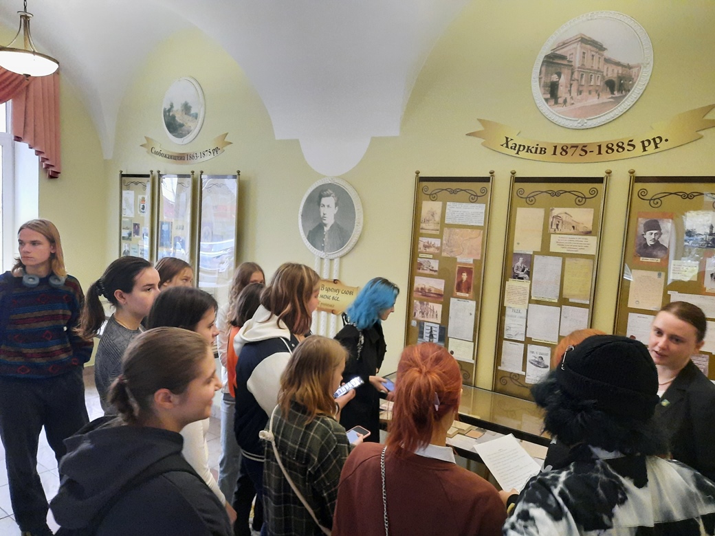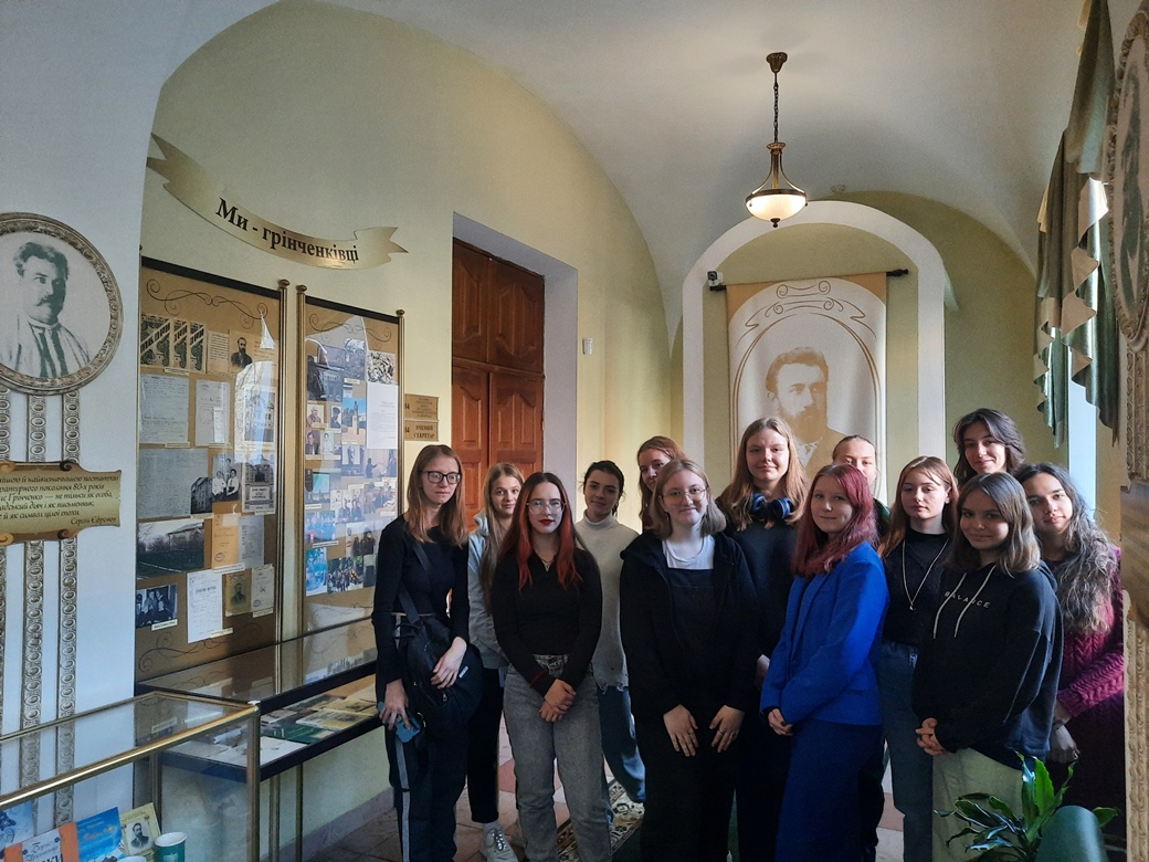 Продовжуємо серію екскурсій до Музею Бориса Грінченка! 25 жовтня 2023 року студенти І курсу спеціальності «Початкова освіта» Фахового коледжу «Універсум» відвідали музей Бориса Грінченка. Під час екскурсії студенти мали змогу ознайомитись з біографією та науково-культурною спадщиною видатного українського письменника, педагога, лексикографа, літературознавця, етнографа, історика, публіциста, громадсько-культурного діяча Бориса Дмитровича Грінченка, а також історією архітектурної пам’ятки-будівлі по вул. Бульварно-Кудрявська 18/2. Екскурсію провела Доценко Альона Олександрівна, викладачка, голова циклової комісії з педагогічної освіти.