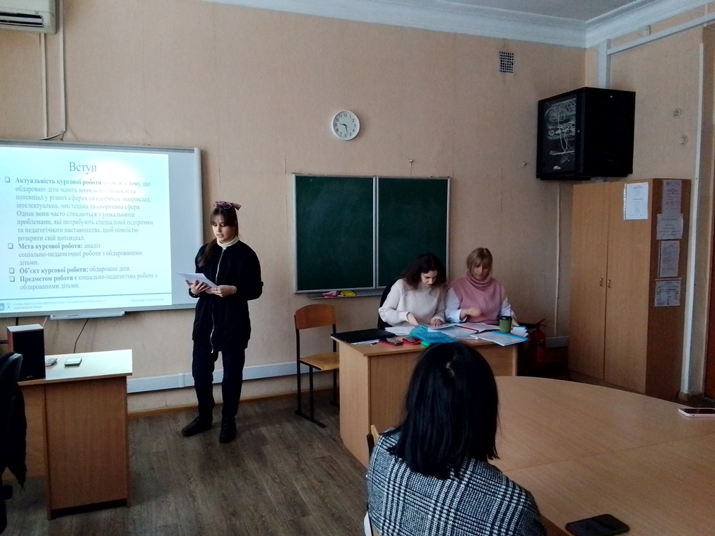 09 січня 2024 року, відповідно до графіку захисту курсових робіт у 1 семестрі 2023-2024 року, відбувся захист наукових досліджень студентів спеціальності 231 «Соціальна робота» освітньої програми «Соціальна педагогіка».