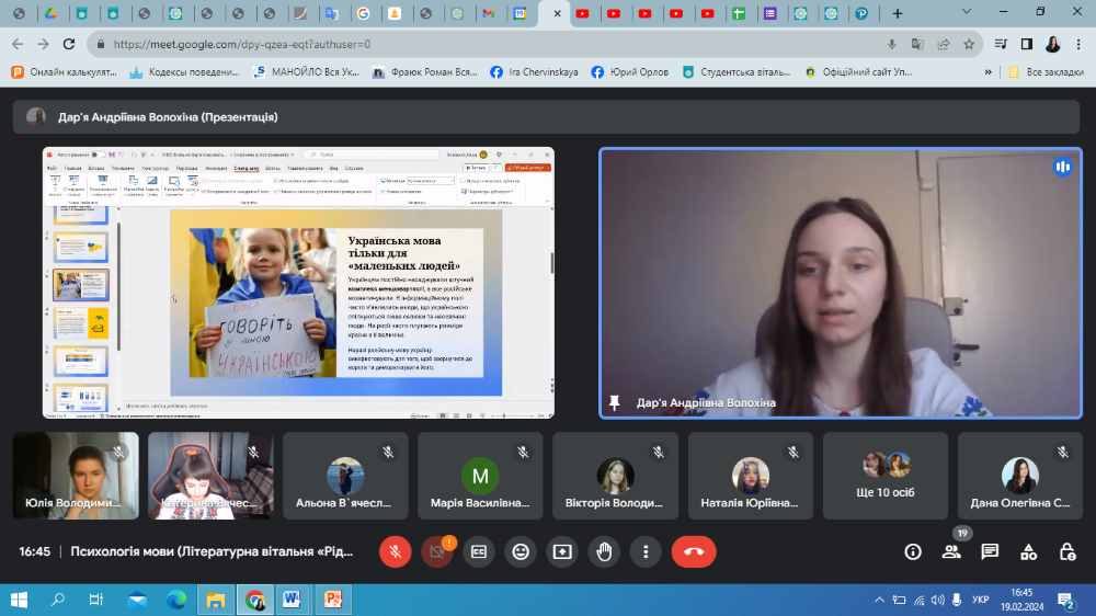 19.02.2024 р. з нагоди Міжнародного дня рідної мови було проведено літературну вітальню «Рідна мова – серця мого подих» для студентів ІІІ курсу спеціальності "Початкова освіта" та викладачів Фахового коледжу "Універсум". Мета заходу: відзначення та вшануванні рідної мови як невід'ємної частини культурного доробку та національної спадщини; підвищення усвідомлення важливості мови для формування національної та культурної ідентичності; заохочення та виявлення творчого потенціалу учасників через мовні та літературні виступи.